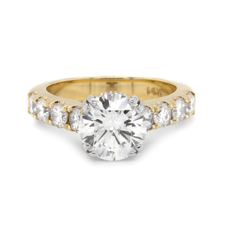 This elegant 14KT two-tone engagement ring features a GIA certified…