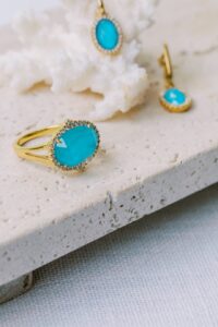 This mom is always the one with the latest styles but always seems to make it look timeless, not just trendy. Just in time for summer days, the timeless combination of turquoise and gold will set the style for the whole neighborhood.
