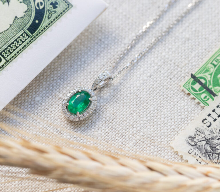 If the phrase “sweater weather” is music to your ears, this emerald diamond pendant necklace is a must have. Perfect over a turtleneck or a blouse, this piece will make you the chicest in the room.