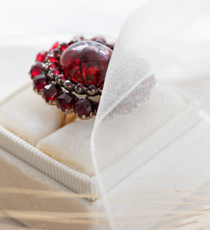 If you’re jumping into the fall fantasy, this beautiful garnet cluster ring will be the shining star of any ensemble — no matter if you’re in a pumpkin patch or traveling up to New Hampshire to enjoy the fall foliage.
