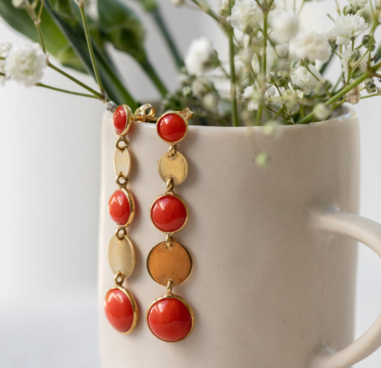 If you’re missing warm summer nights and are hesitant to embrace fall, ease into it with these bezel style coral drop earrings.