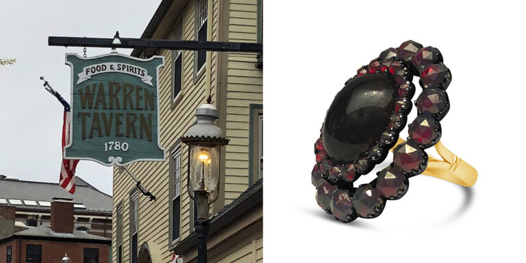 This exquisite 18kt yellow gold, garnet ring reflects the type of jewelry popular among Europeans back when the tavern first opened its doors!