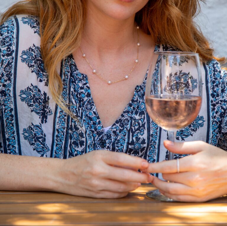 Chemicals aren’t friendly to pearls. After every use, we recommend wiping the jewelry with a soft cloth or, if needed, a damp cloth.