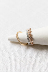 Stacking is in. Whether it is bracelets, necklaces or rings, sometimes more is better. Add to her existing stack or help create one with a trio of delicate and beautiful rings.